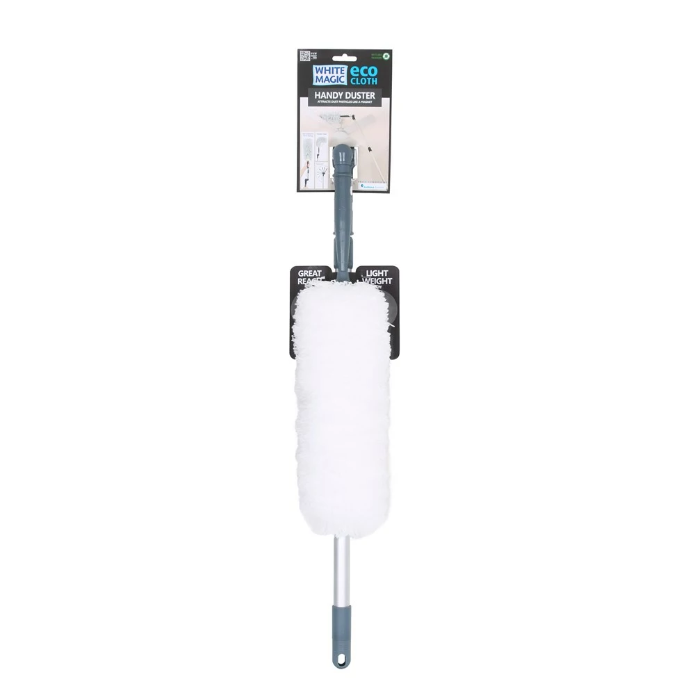The White Magic Handy Duster is the ultimate dusting tool to get into those hard to reach places. The head is made of 100% split polyester which picks up dust like a metal to a magnet and is attached to an incredibly flexible memory wire that allows for the duster head to be pivoted to 220C. This will aid access into tight areas making the duster ideal for fans, lights, blinds, bookcases and other hard to reach places. The head can be washed in warm soapy water and reused again and again.