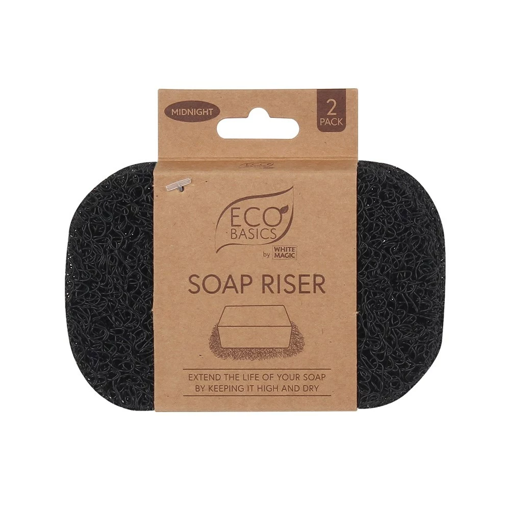 Keep your soap bars dry and free from soap scum with the White Magic Soap Riser Black. This fantastic soap riser extends the life of your soap bar by allowing water to drain away, thereby encouraging air to circulate underneath to keep your soap bar dry. The White Magic Soap Riser Black is made from BPA-free plastic for long-lasting use, is so easy to clean and can also be cut into any size or shape to suit any type of soap bar. It can be used either as a soap dish itself or placed inside another soap dish. The White Magic Soap Riser Black comes in a pack of 2 to allow use in 2 different wet areas and is available in a variety of colours so you can find the one to blend in seamlessly with any interior colours. Use the White Magic Soap Riser Black in your bathroom by your bath, basin or shower, and keep one handy next to the kitchen sink too!