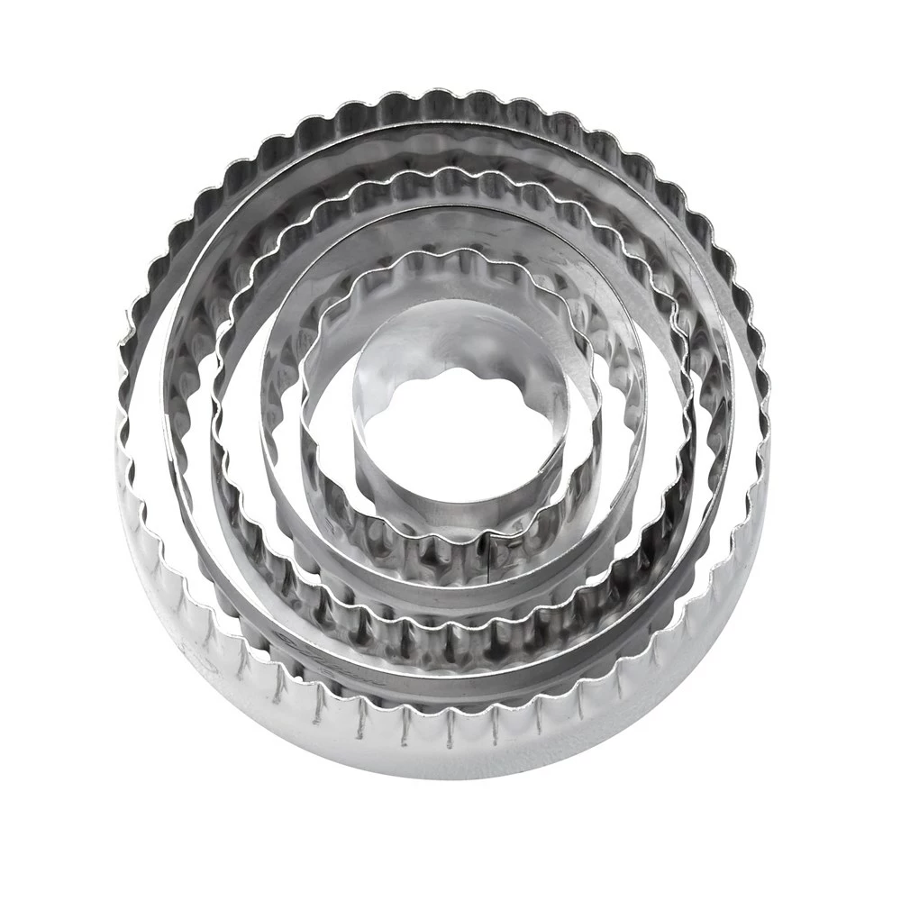 With one side of each piece having a straight edge, and the other with a crinkled edge, you can cut 12 designs from the Wilton 6-Piece Round Cutouts set. The set includes 6 cutouts with gradually increasing size, so that you can make intricately layered details with varied finishings for any fondant cake. Mix smooth and scalloped edges, as well as mixing and matching with other shapes from the range to form interesting creations. The possibilities are endless with Wilton’s 6-Piece Round Cutouts set.