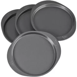 No need to worry about straight-cut layers while torting with the Wilton 4 Layer Cake Pan Set – you can make tall, impressive 4 layer cakes with ease. Perfect layers are easy to achieve with this 4-piece set, each piece is 8 inches in diameter and 3/4 of an inch in depth – most ovens have enough room to accommodate all 4 pans at once which saves you both time and trouble. The non-stick coating on the Wilton 4 Layer Cake Pan Set makes cleaning up even faster, while also protecting your cakes from breaking apart.